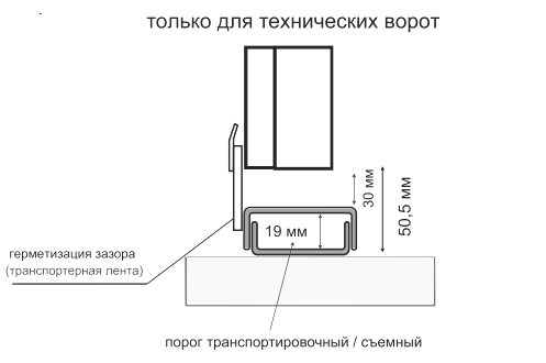 Размеры ворот даны под толщину уплотнителя полотна 60 мм